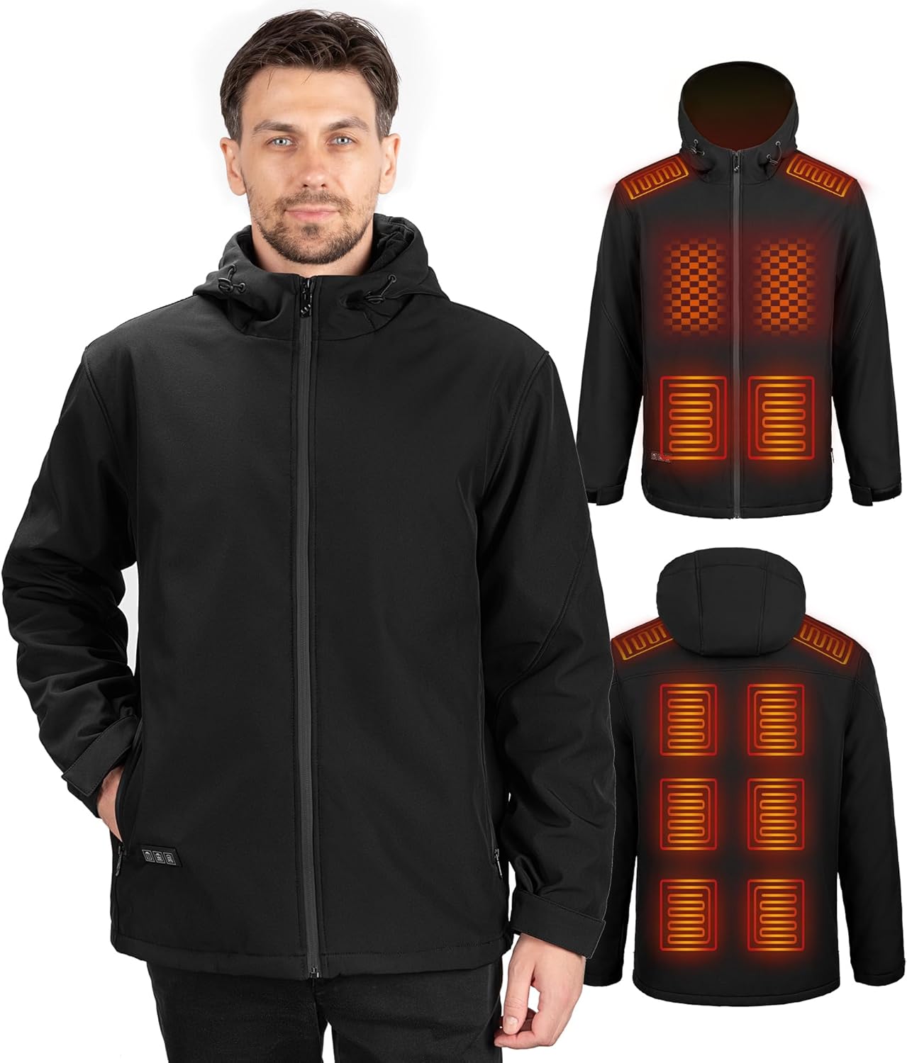 Heated Jackets for Men - 12 Heating Zones, 2025 Winter Soft Heating Coat with Detachable Hood