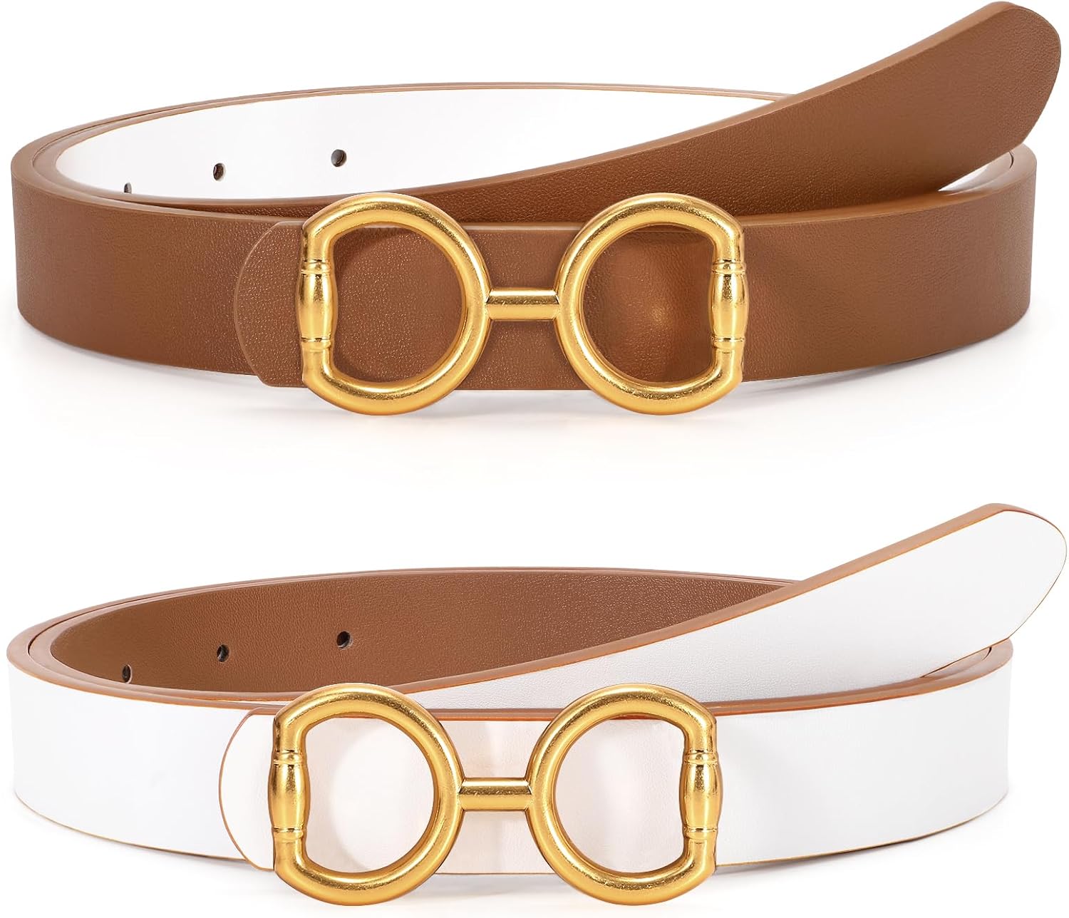 TRIWORKS Reversible Leather Belt for Women, Fashion Ladies Belt for Jeans Pants Dress Width:0.9"