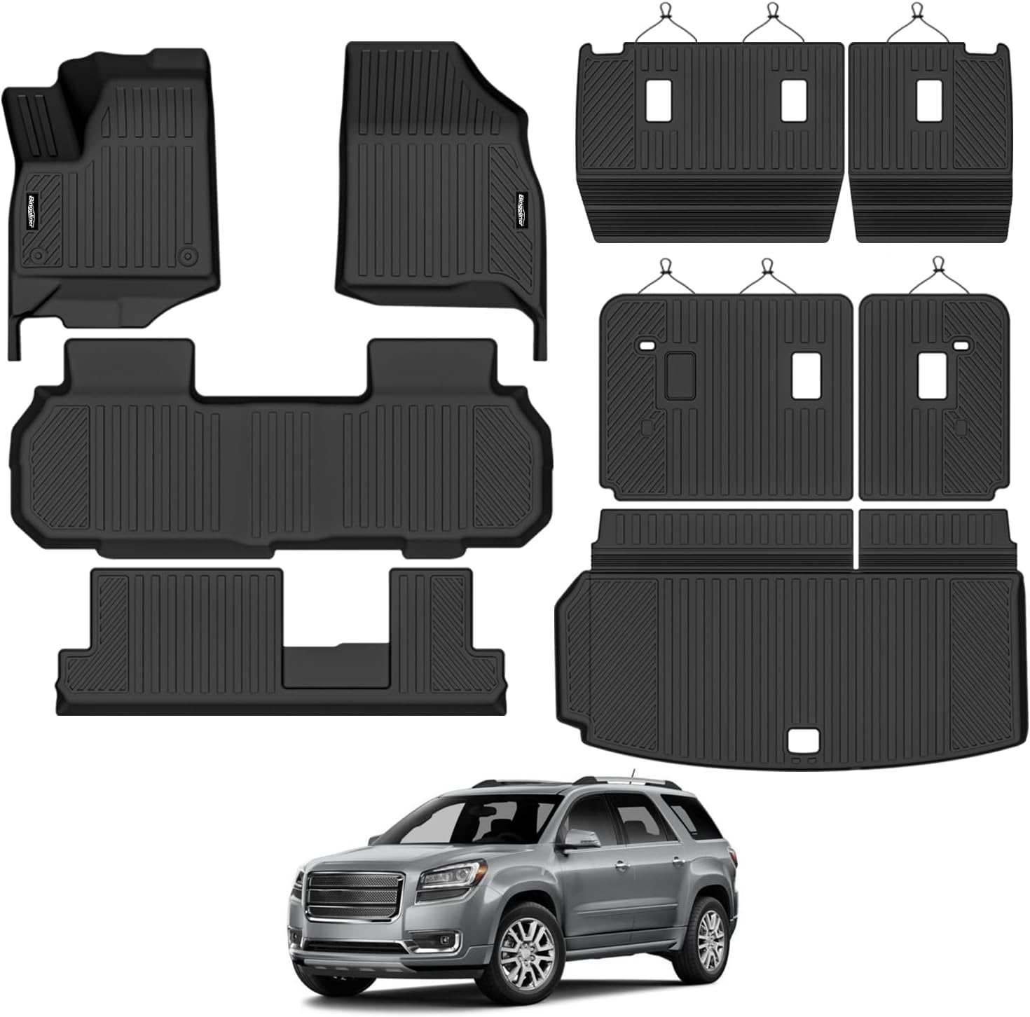 Floor Mats for 2024-2026 Chevy Traverse/2024-2026 GMC Acadia 8 Seat, Trunk Mat and Backrest Mat All Weather TPE Protector for Chevrolet Traverse Accessories