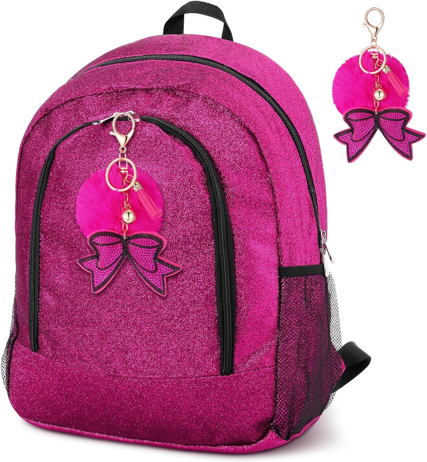 - Simple Trendy: the backpack is designed for cheerleading, this package includes a cheer backpack and a cheer bow keychain, it's striking hot pink colour is enhanced with glitter features to stand out at event