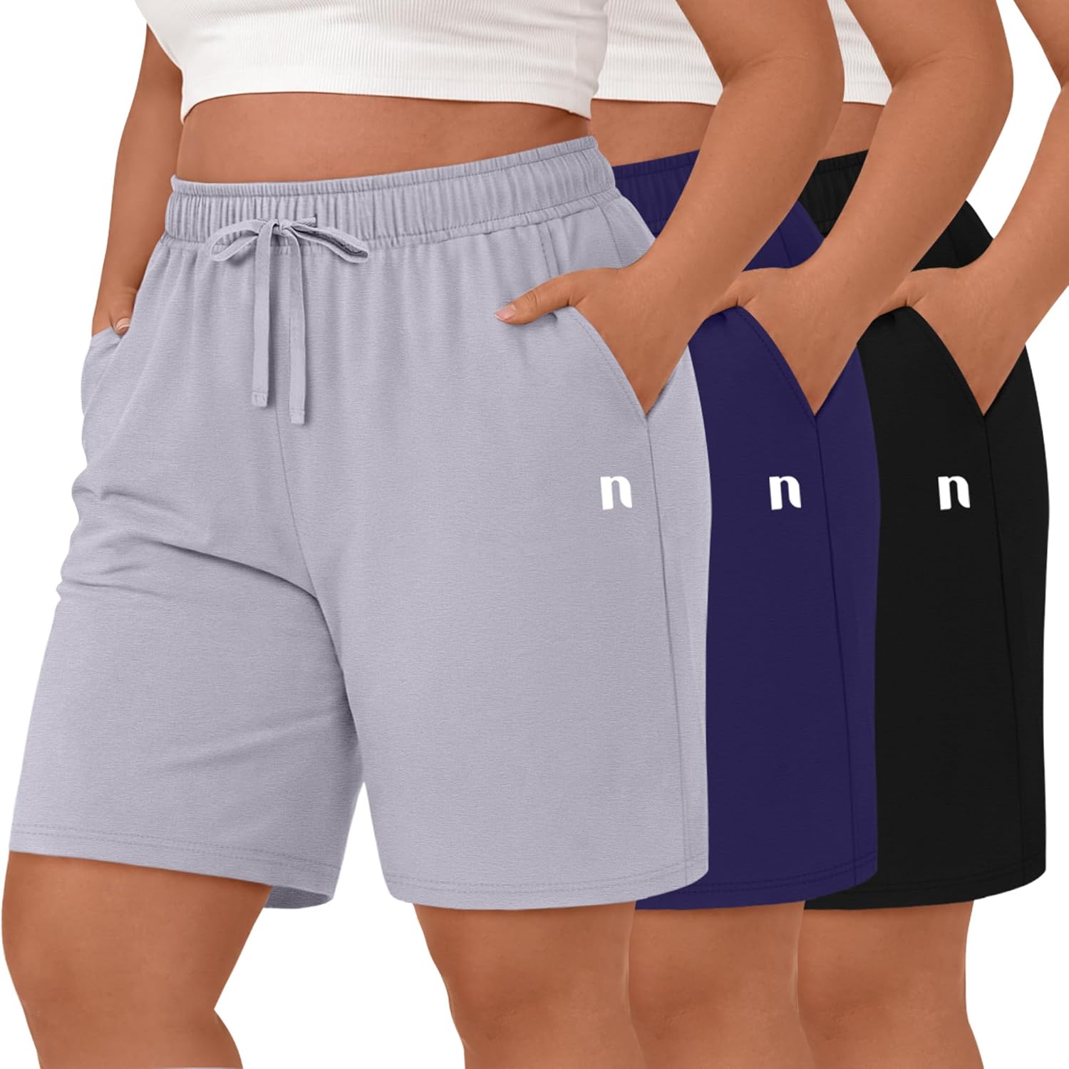 Neer 3 Pack Plus Size Women's Bermuda Shorts Cotton Drawstring High Waisted Casual Athletic Sweatpants Shorts with Pockets