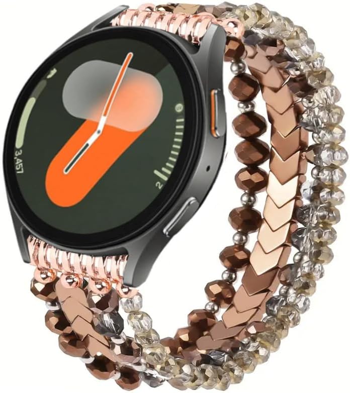 Bands Beaded Compatible with Samsung Galaxy Watch 7 / FE / 6/5 / 4 40mm 44mm / 6 Classic / 5 Pro / 4 Classic, 20mm Handmade Elastic Crystal Beads Bracelet for Huawei GT3 42mm Women