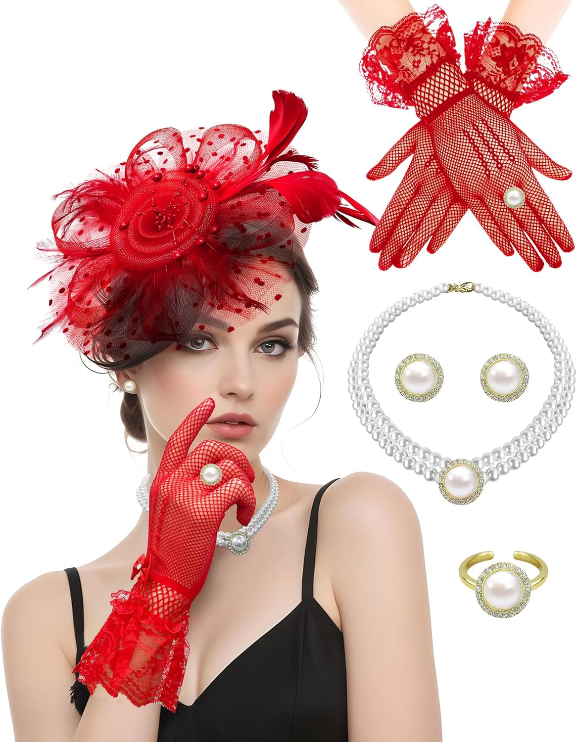 Fascinators Hat for Women Tea Party Hat Headband Flower Mesh Ribbons Feathers Clip Tea Party Headwear