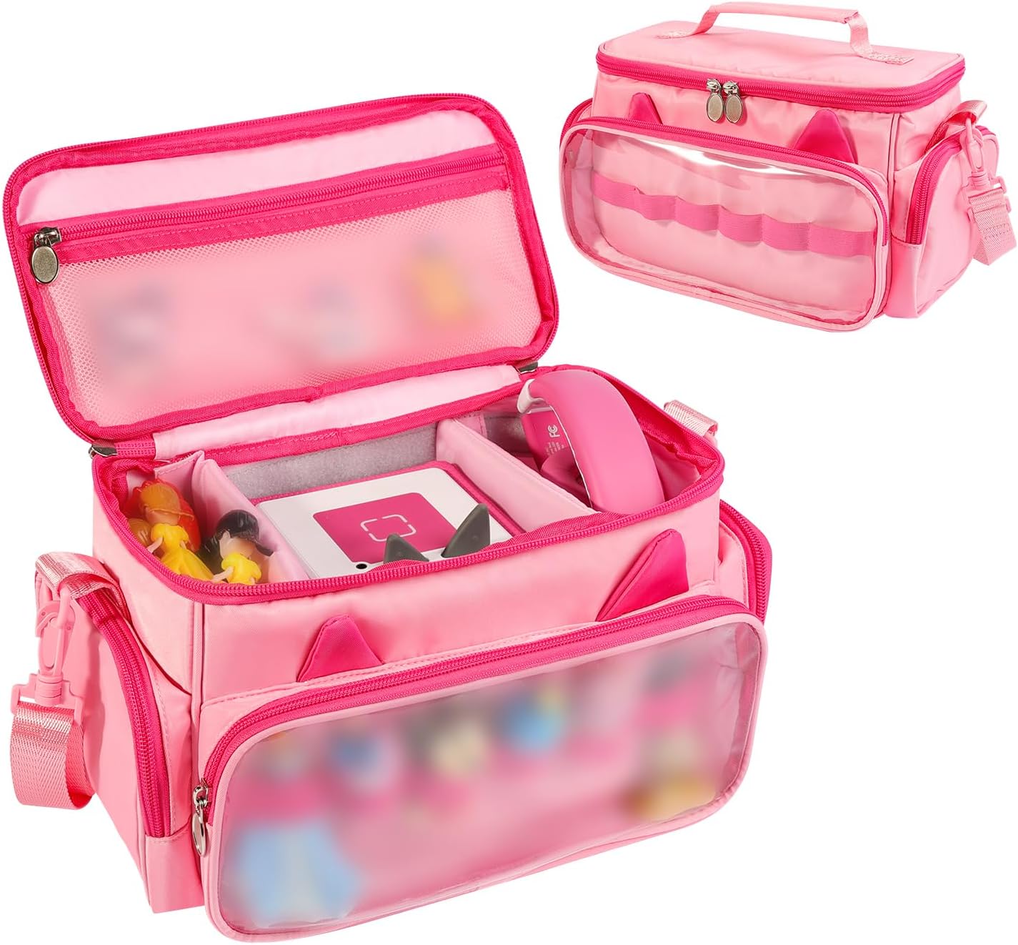 Carrying Case Compatible with Toniebox 2 & 1, Storage Bag Organizer for Tonies Starter Set, Headphones & Accessories, Portable Travel Bag with Handle and Adjustable Shoulder Strap(Pink)