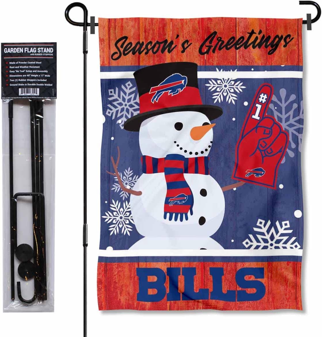 Buffalo Bills Holiday Snowman Garden Flag and Flagpole Mount