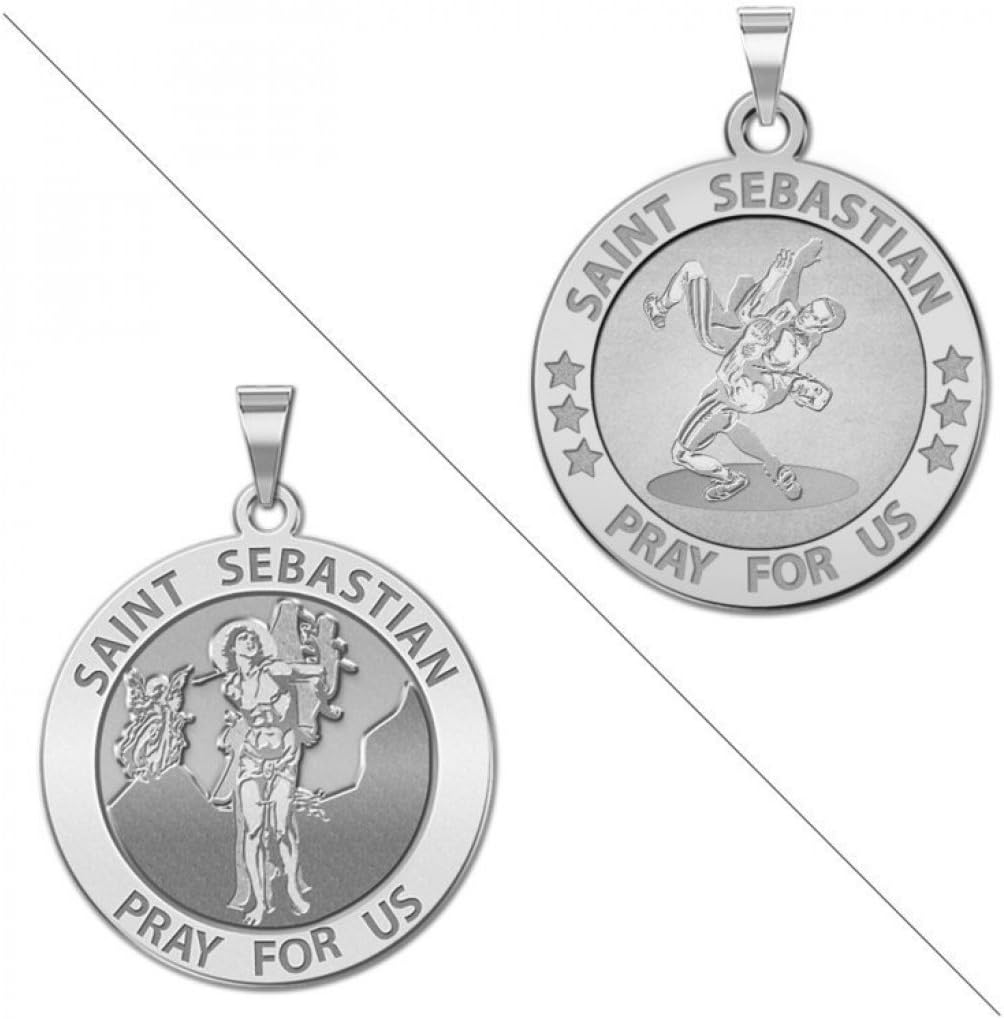 PicturesOnGold.com Wrestling - Saint Sebastian Doubledside Sports Religious Medal - 2/3 Inch Size of Dime, Sterling Silver