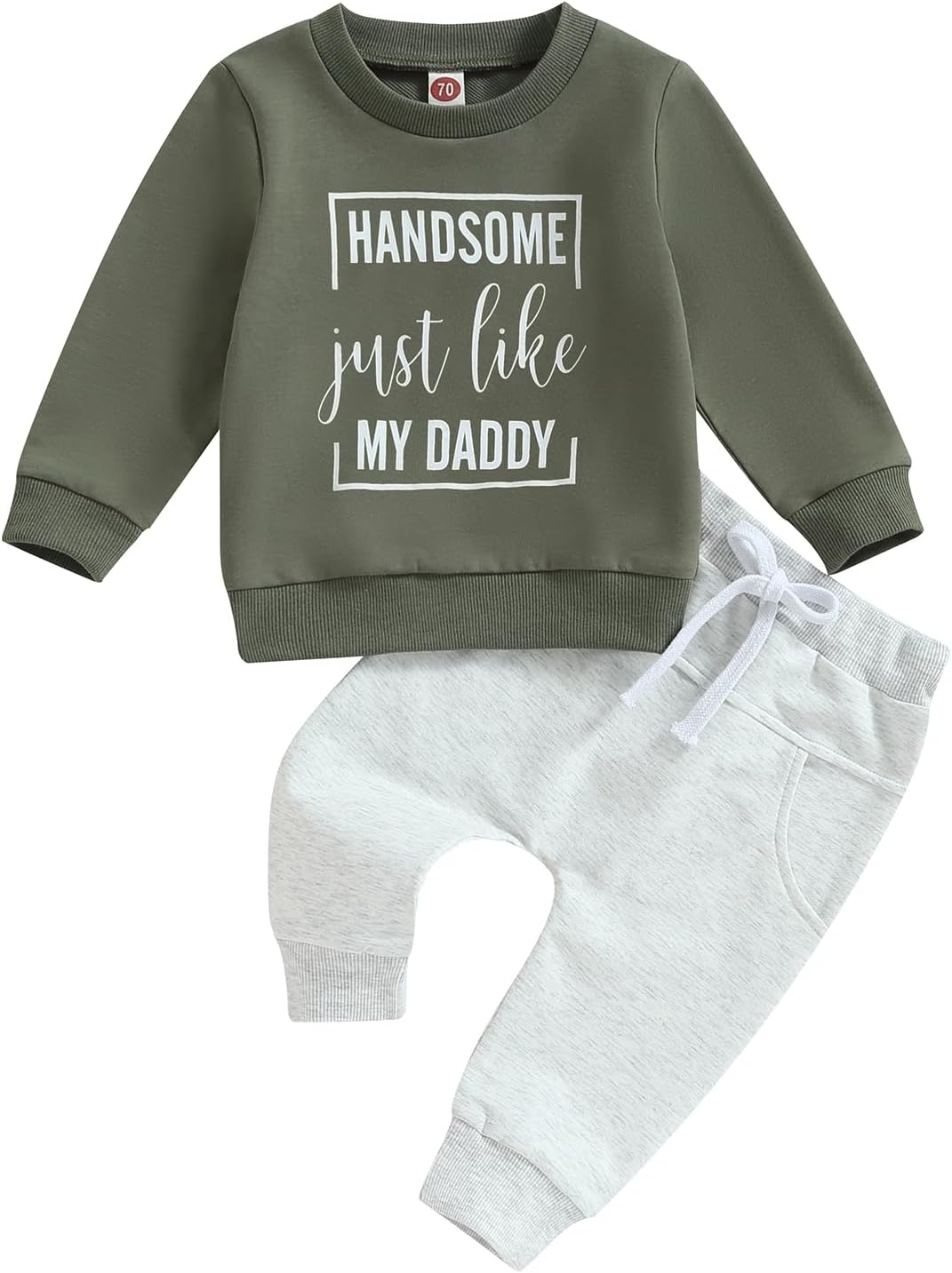 YINGISFITM Toddler Baby Girl Boy Fall Winter Clothes Letter Long Sleeve Shirt Crewneck Swatshirt Top Pocket Pants Outfit Set