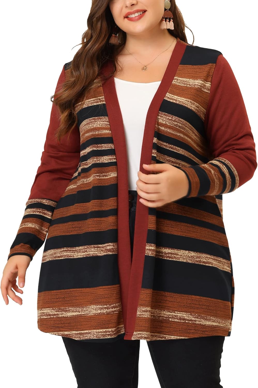 Agnes Orinda Plus Size Cardigan for Women Open Front Long Sleeve 2023 Striped Boho Sweater Cardigans