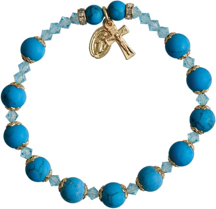 Sine Cera Turquoise 1 Decade Catholic Rosary Bracelet, Round 8mm Beads