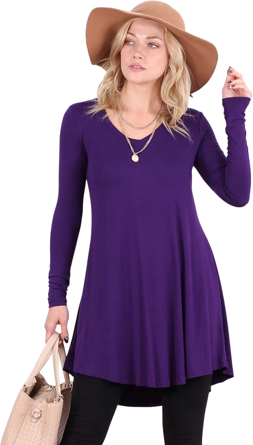 Popana Long Sleeve Tunic Tops for Women, Loose Fit Dressy Long Tops to Wear with Leggings, Soft Stretchy Tunic Top
