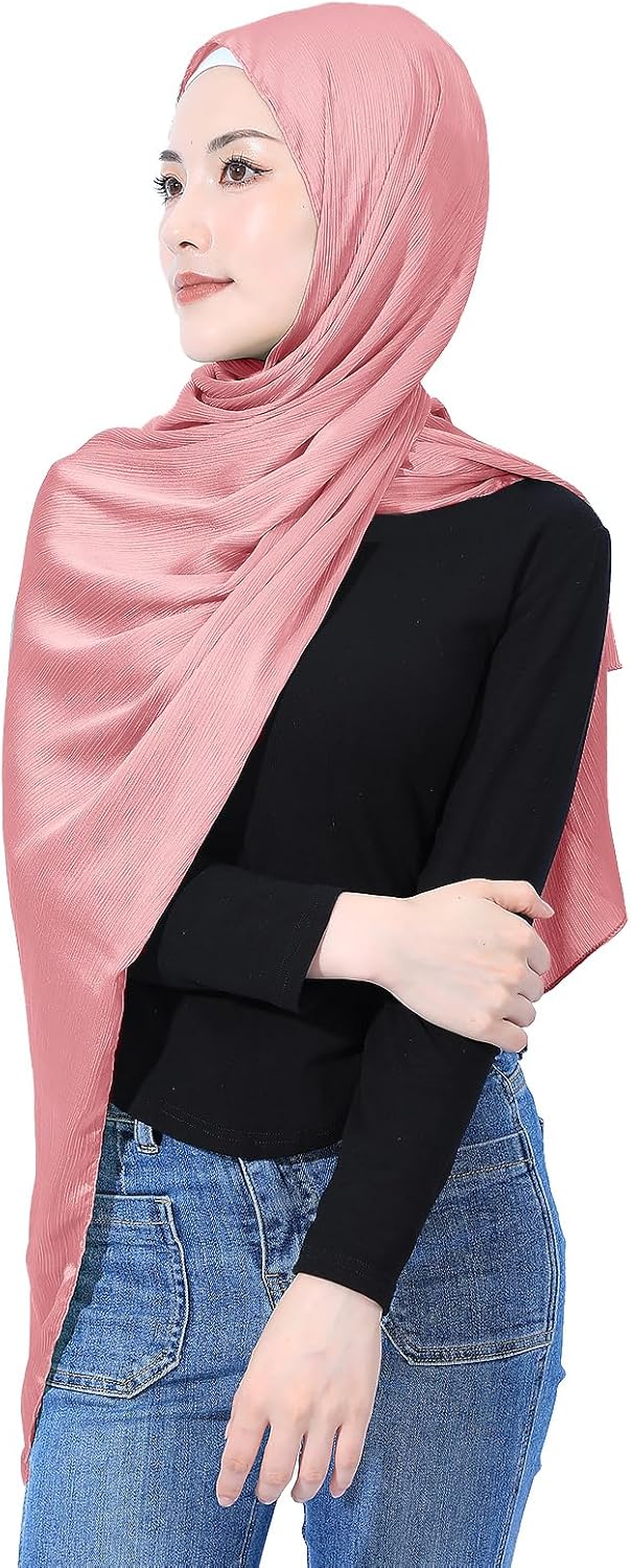 Luxury Silky Satin Hijab for Women, Shimmer Crinkle Muslim Head Scarf, Graceful Feminine Charm