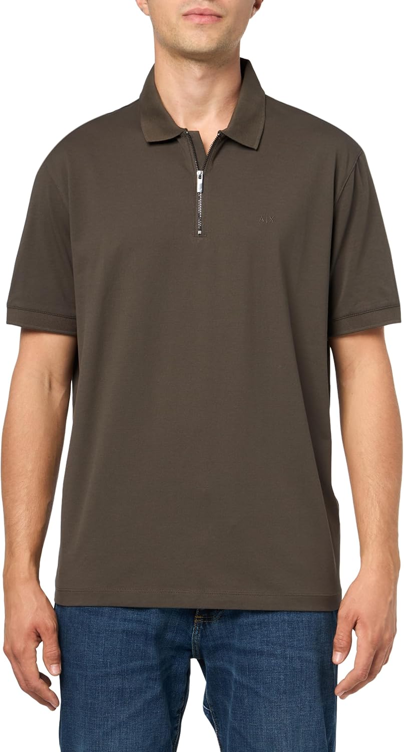 Armani Exchange Men's Stretch Cotton Regular Fit Zip Up Polo