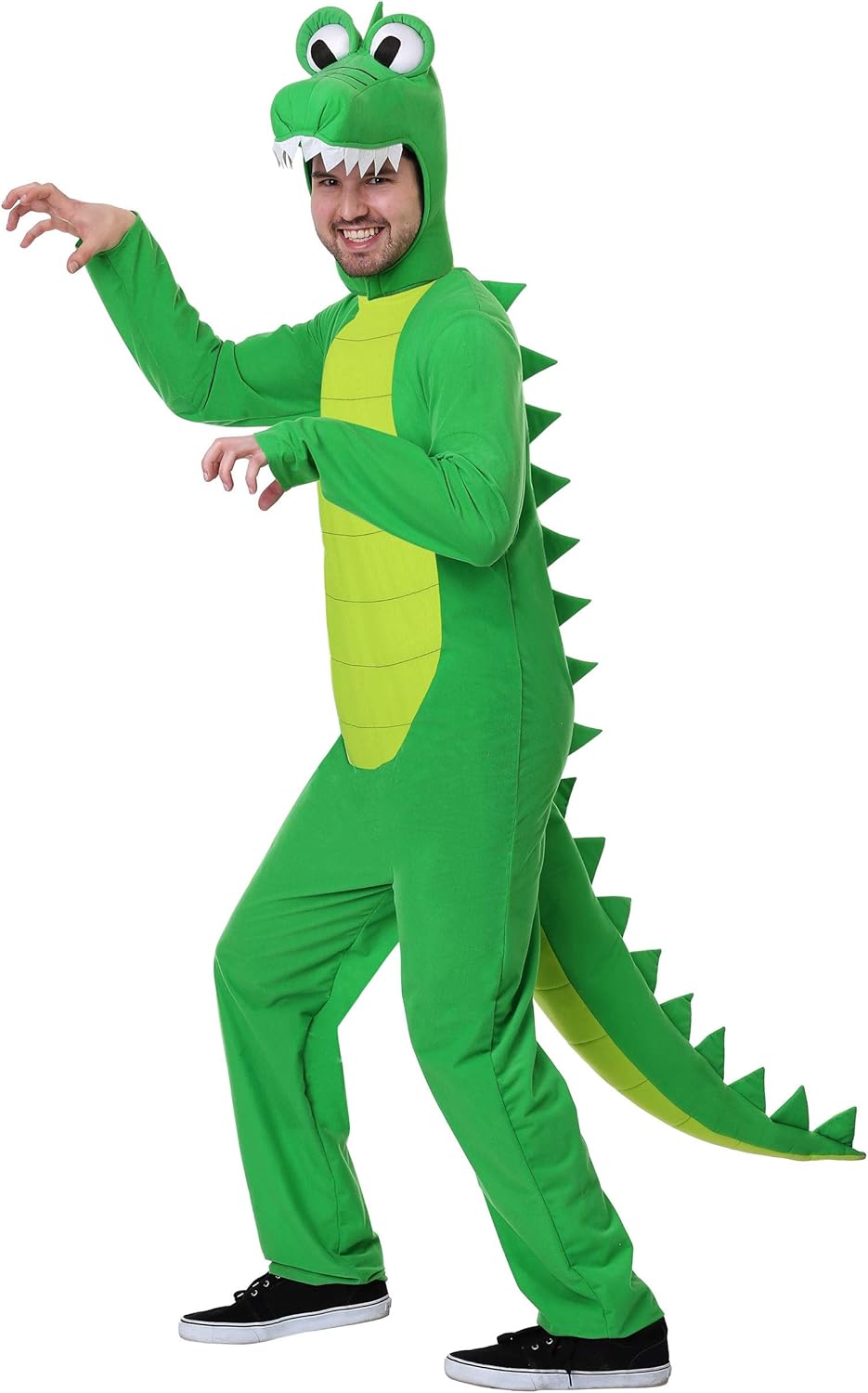 Plus Size Goofy Gator Costume for Adults - Jumpsuit with Stuffed Tail and Alligator Hood