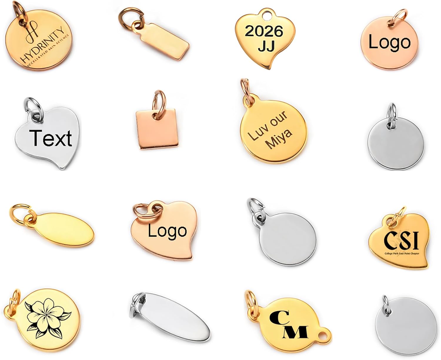 MeiceM Custom 40-150 Pcs Plated Gold Jewelry making Charms Personalized Charms for bracelet necklace with Jump Rings jewelry findings