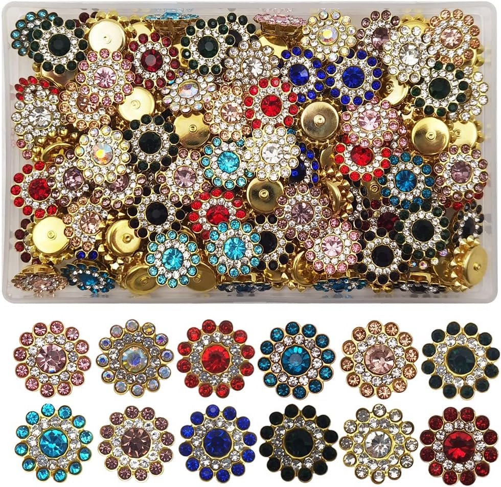 INSPIRELLE 14mm 120pcs Sunflower Crystal Glass Sew on Stainless Steel Setting Gold Claw Flower Rhinestone for Decoration Crafts Clothes Wedding Dresses