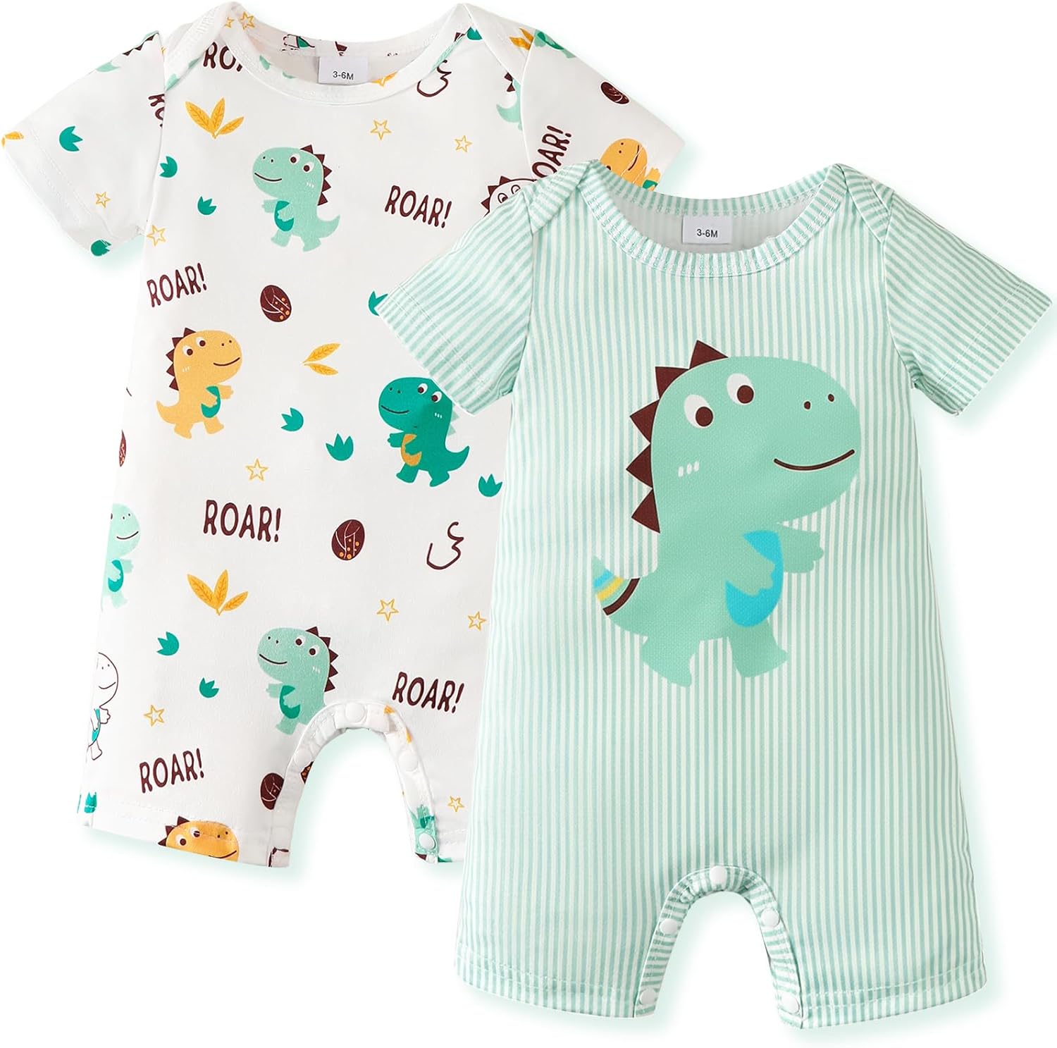 NZRVAWS Newborn Baby Boy Clothes Infant Romper 2-Pack outfit Cute Pattern Essential Short Sleeve Summer Spring Clothing 0-24M