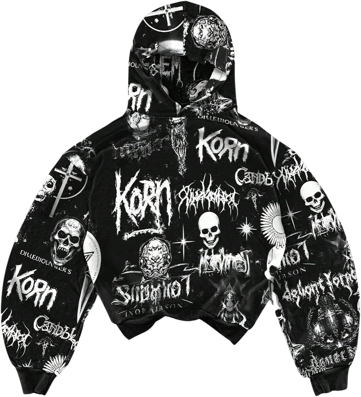 Men's Skull Graphic Hoodies Pullover Grunge Long Sleeve Sweatshirts Gothic Alternative Clothes