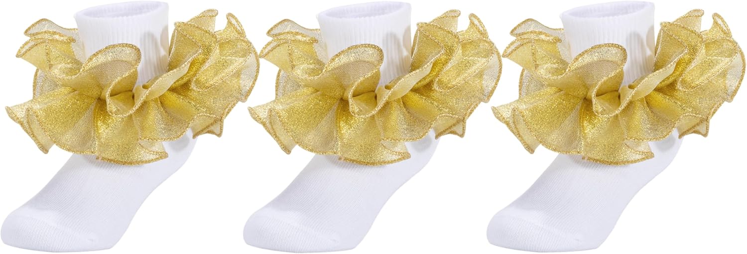 Dicry Girls Double Lace Socks Turn Cuff Big Ruffle for Infant Toddler and Kids