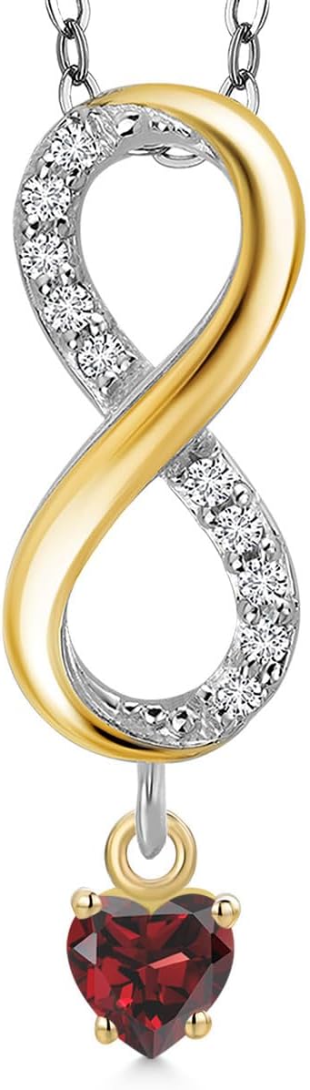 Gem Stone King 925 Silver and 10K Yellow Gold Red Garnet and Lab Grown Diamond Pendant Necklace for Women | 0.74 Cttw | Gemstone January Birthstone | Heart Shape 4MM | With 18 Inch Silver Chain