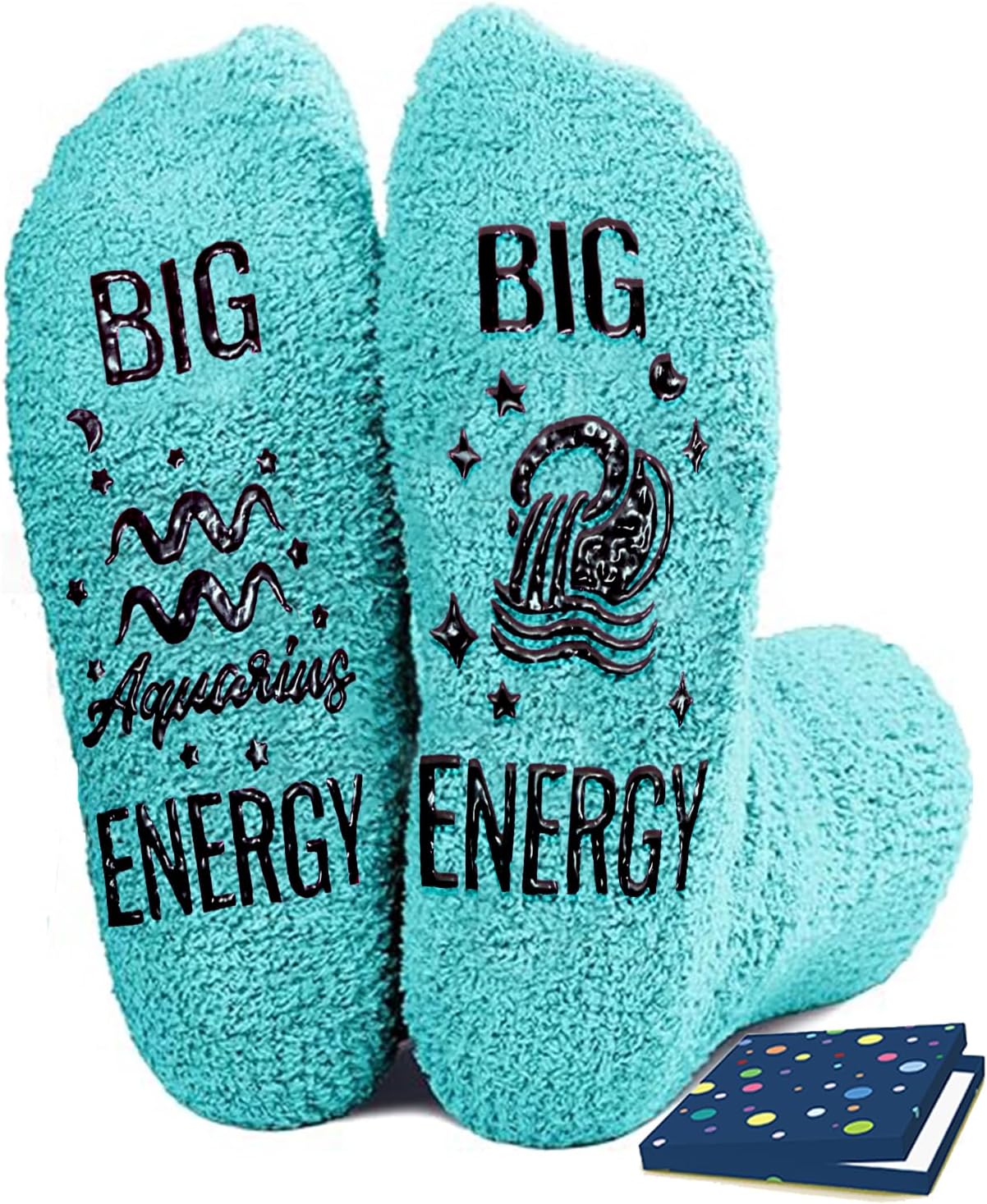 Zodiac Birthday Gifts Astrology Constellation Horoscope Fuzzy Space Galaxy Socks for Women Teen Girls