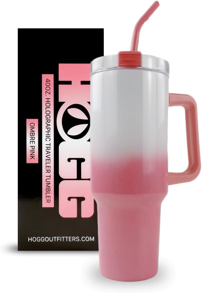 Hogg 40oz Traveler - Holographic Ombre Pink, 40 oz Sublimation Tumblers Bulk, Sublimation Tumblers with Handle