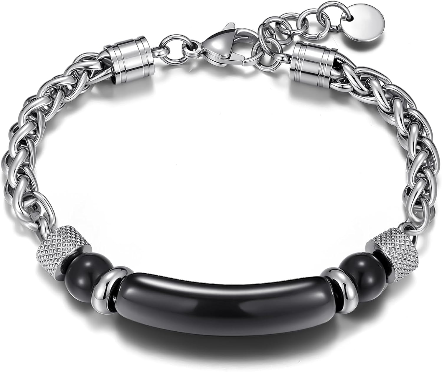 Silver deer 2026 Ultimate Adjustable Black Men's Bracelet - Stainless Steel & Titanium Chain with Genuine Black Obsidian Stone Beads (7.67" Anti-Tarnish & Non-Fade Design)