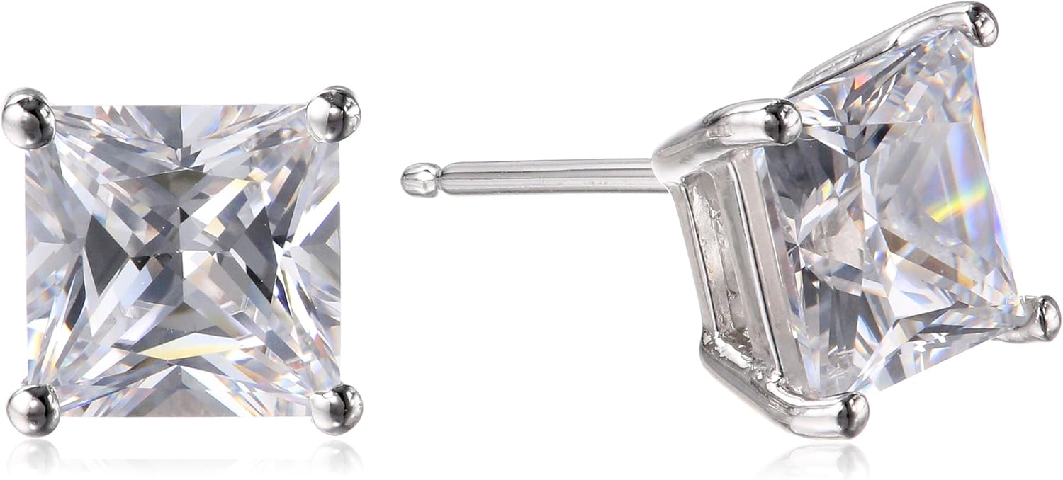 Amazon Essentials Plated Sterling Silver Cubic Zirconia Stud Earrings (Round & Princess)