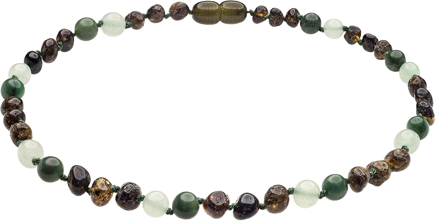 Genuine Amber Necklace From Baltic Sea Made With Polished Green African Jade Aventurine 45 cm (17.7 Inches)