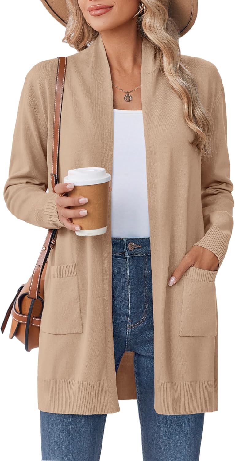 Zeagoo Women Long Cardigan Sweaters Lightweight Open Front Duster Knit Fashion Sweater Coats Trendy Cardigans with Pocket