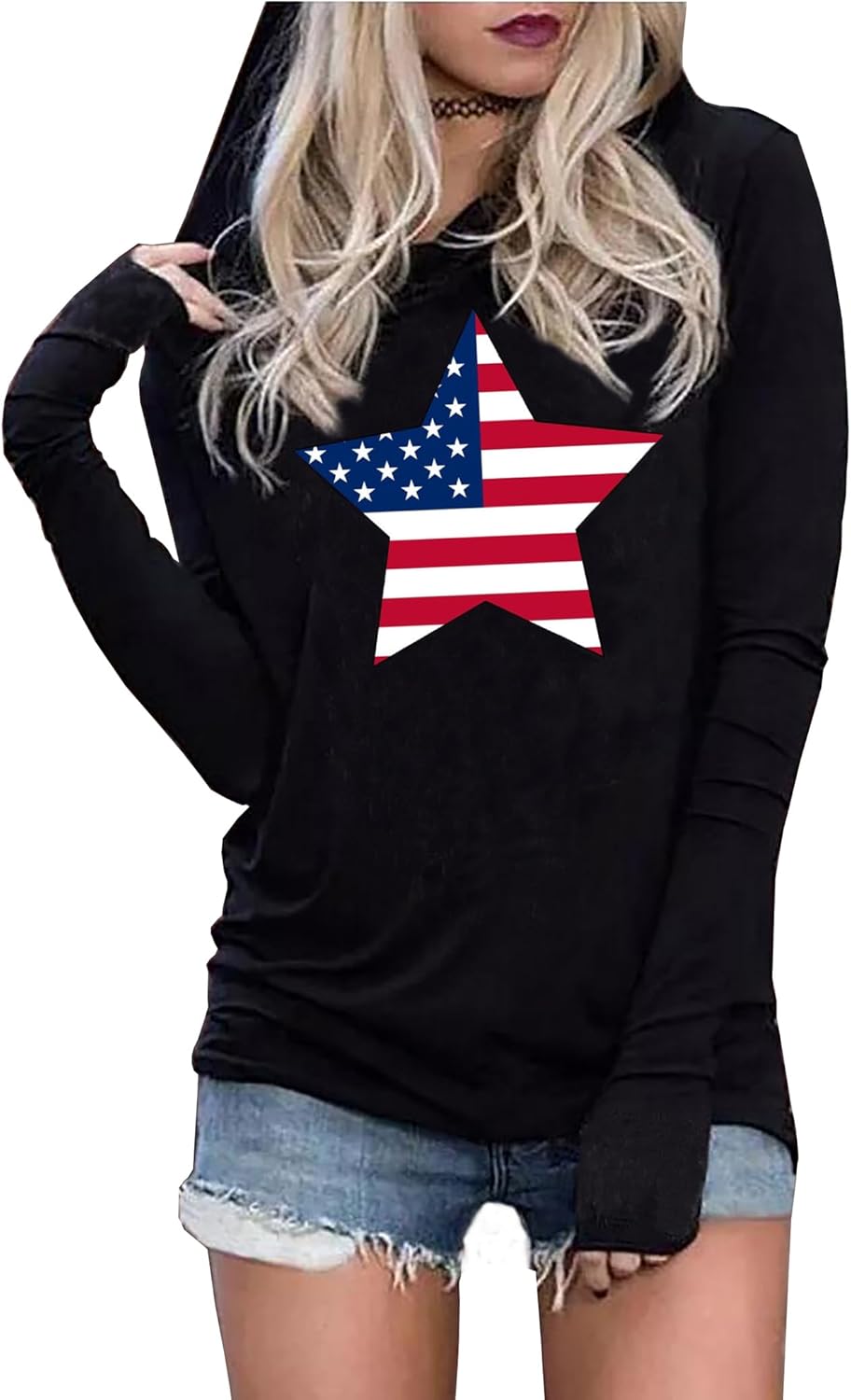 Susongeth American Flag Hoodie for Women 4th of July Patriotic Long Sleeve Shirt Independence Day USA Flag Pullover Tops