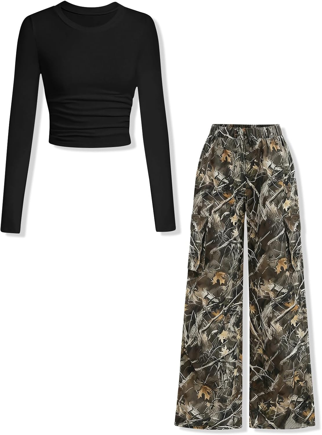 Girls Clothes Tween Girl Outfits Long Sleeve Ruched Top Botanical Print Relaxed Pocket Pants Set