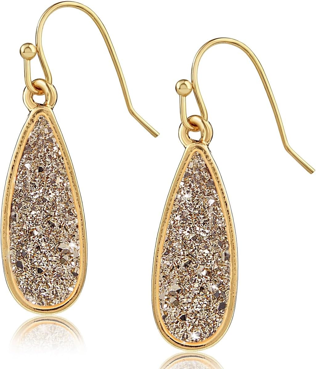 Teardrop Dangle Earrings for Women with Simulated Druzy Stones, in Gold, Rose Gold, or Silver Tone