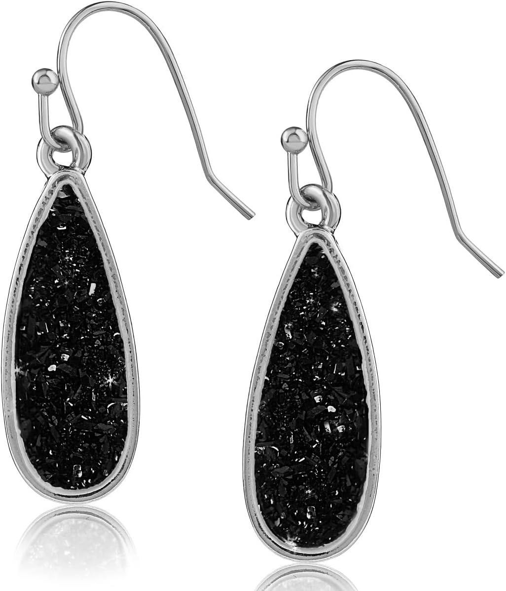 Teardrop Dangle Earrings for Women with Simulated Druzy Stones, in Gold, Rose Gold, or Silver Tone