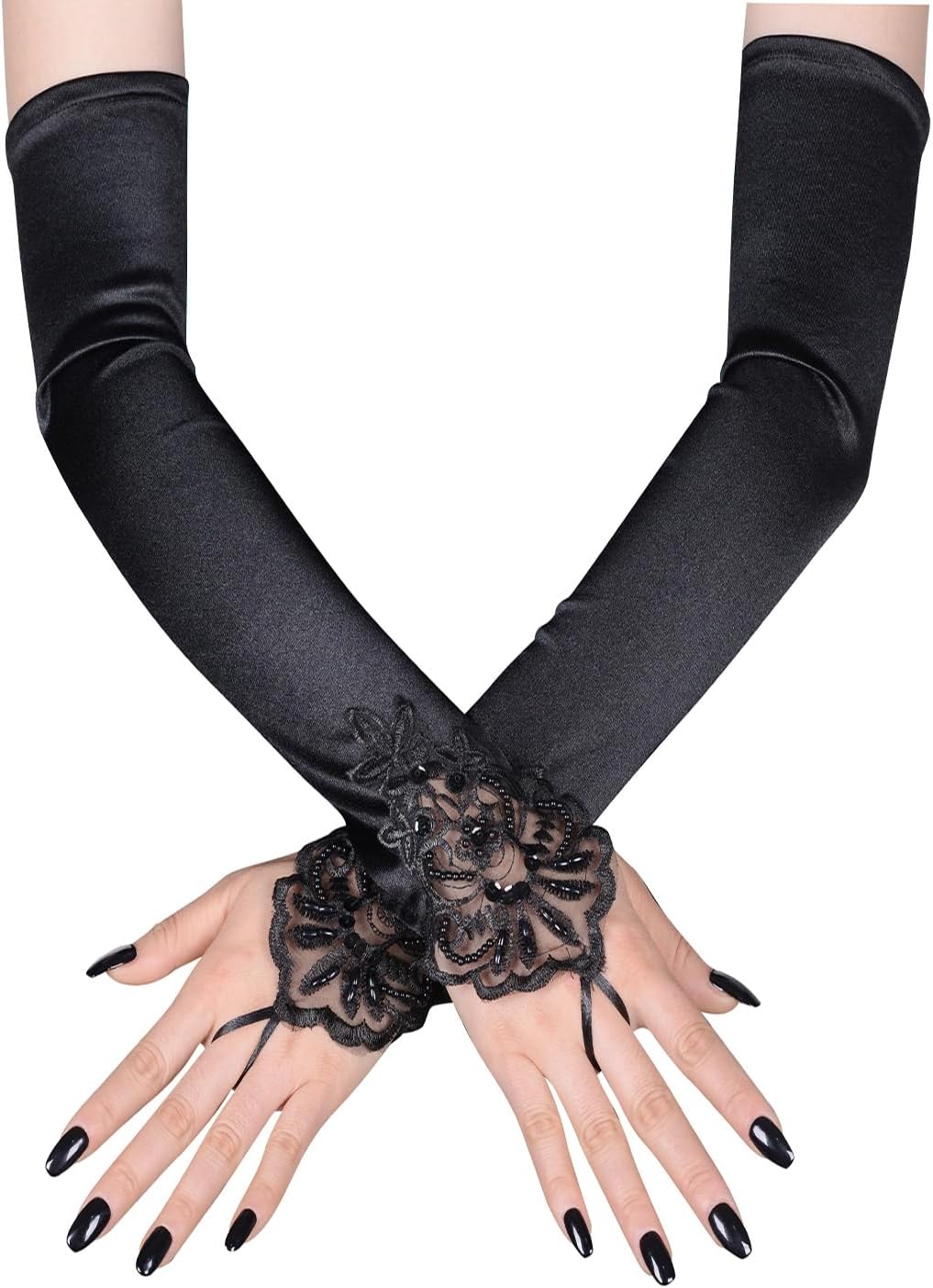 MASIKA Women's Black Long Gloves, Fingerless Gloves, Party, Opera, Evening Dress, Role Playing Accessories.