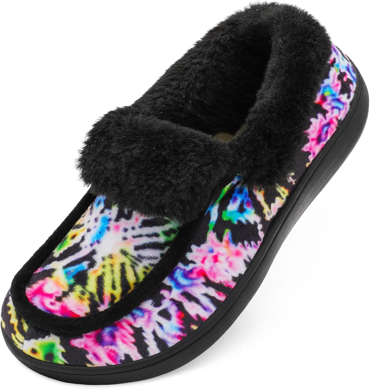 BARERUN Womens Slippers Fuzzy Collar Slipper Boots for Women Wide Toe House Shoes Moccasin Camping Travel Slippers with Hard Rubber Sole Indoor/Outdoor