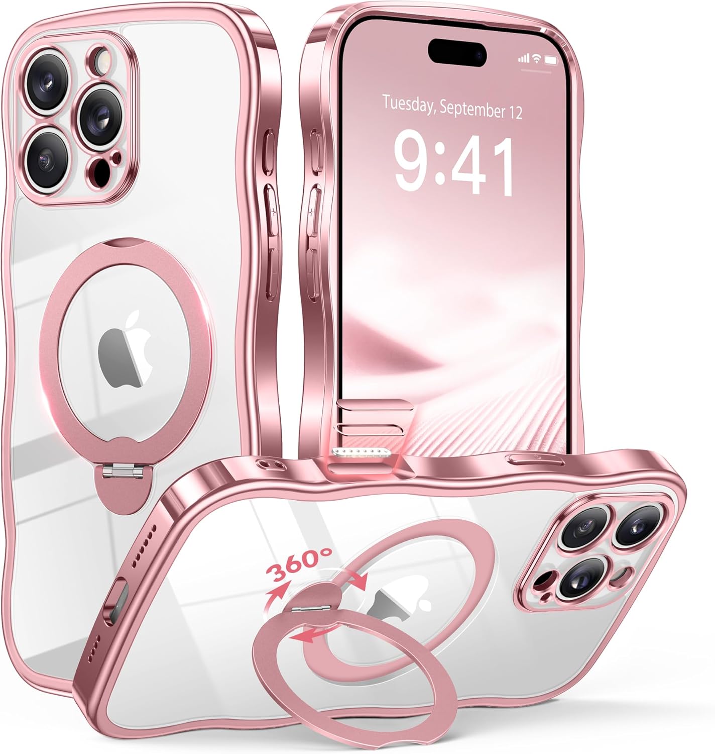 ![GVIEWIN for iPhone 16 Pro Max Case with 360° Magnetic Stand, [Compatible with MagSafe][Full Camera Protection][Non-Yellowing] Cute Slim Electroplated Wave Shockproof Phone Case 6.9", Clear/Pink - Image 3](https://m.media-amazon.com/images/I/81237fITfRL._AC_SL1500_.jpg)