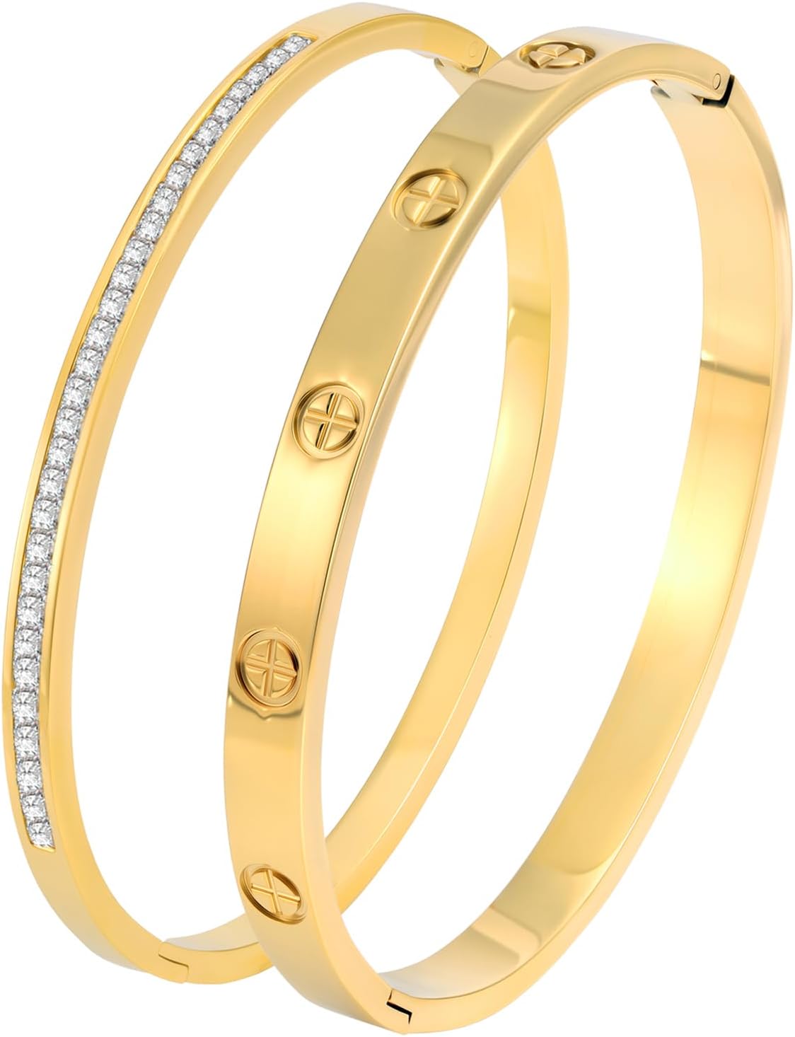 Gold Bangle Bracelets for Women - 2PCS 18 K Gold Plated Stainless Steel Love Bangle Friendship Stack Bracelet Bangle for Her.