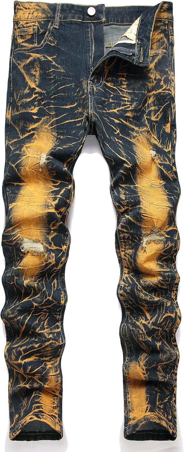 Men's Stretch Slim Fit Jeans Ripped Skinny Straight Leg Distressed Comfort Flex Waist Fashion Biker Denim Pants