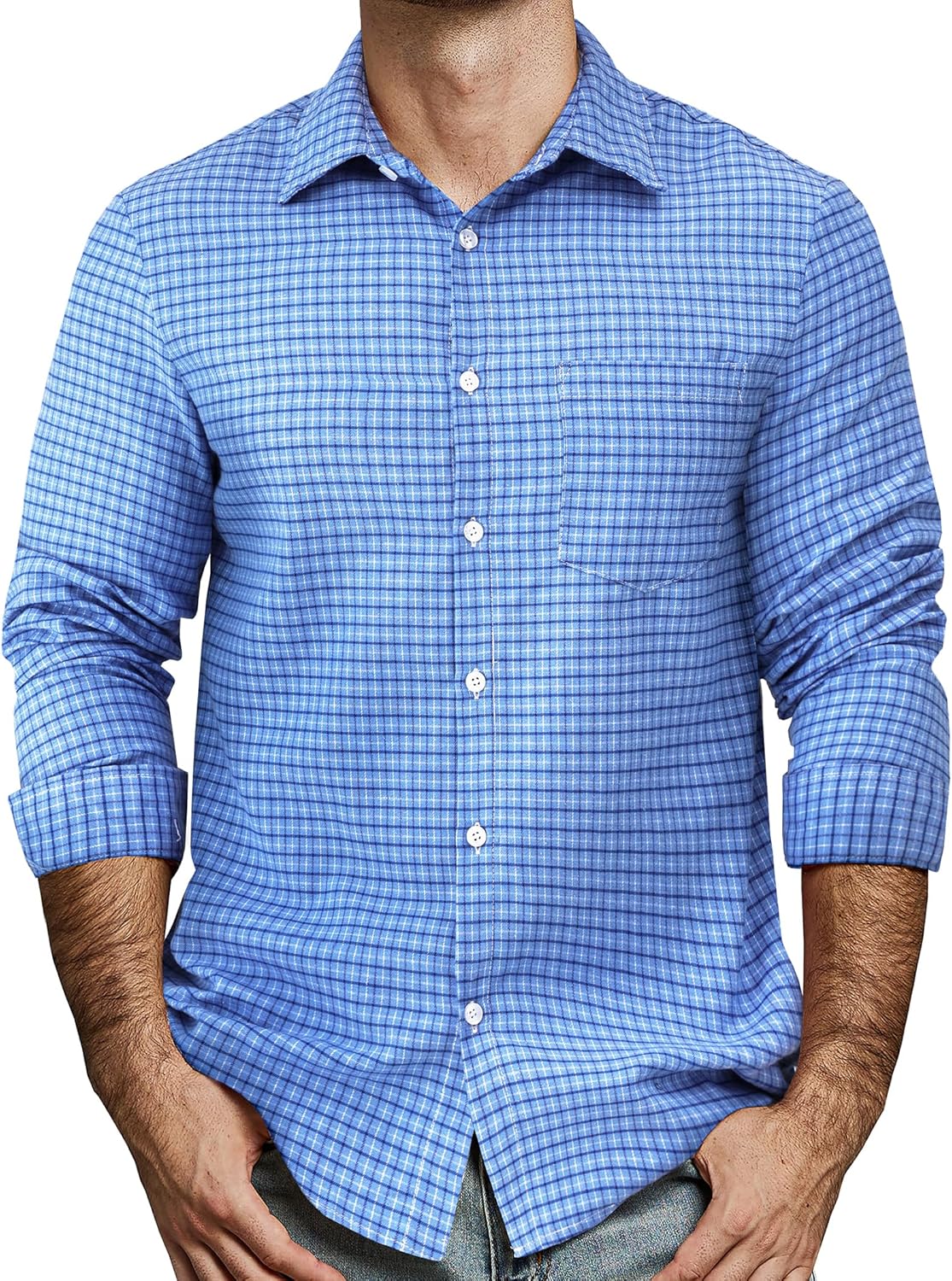 Mens Gingham Button Down Shirt Long Sleeve Dress Shirts Business Casual Shirts with Pockets