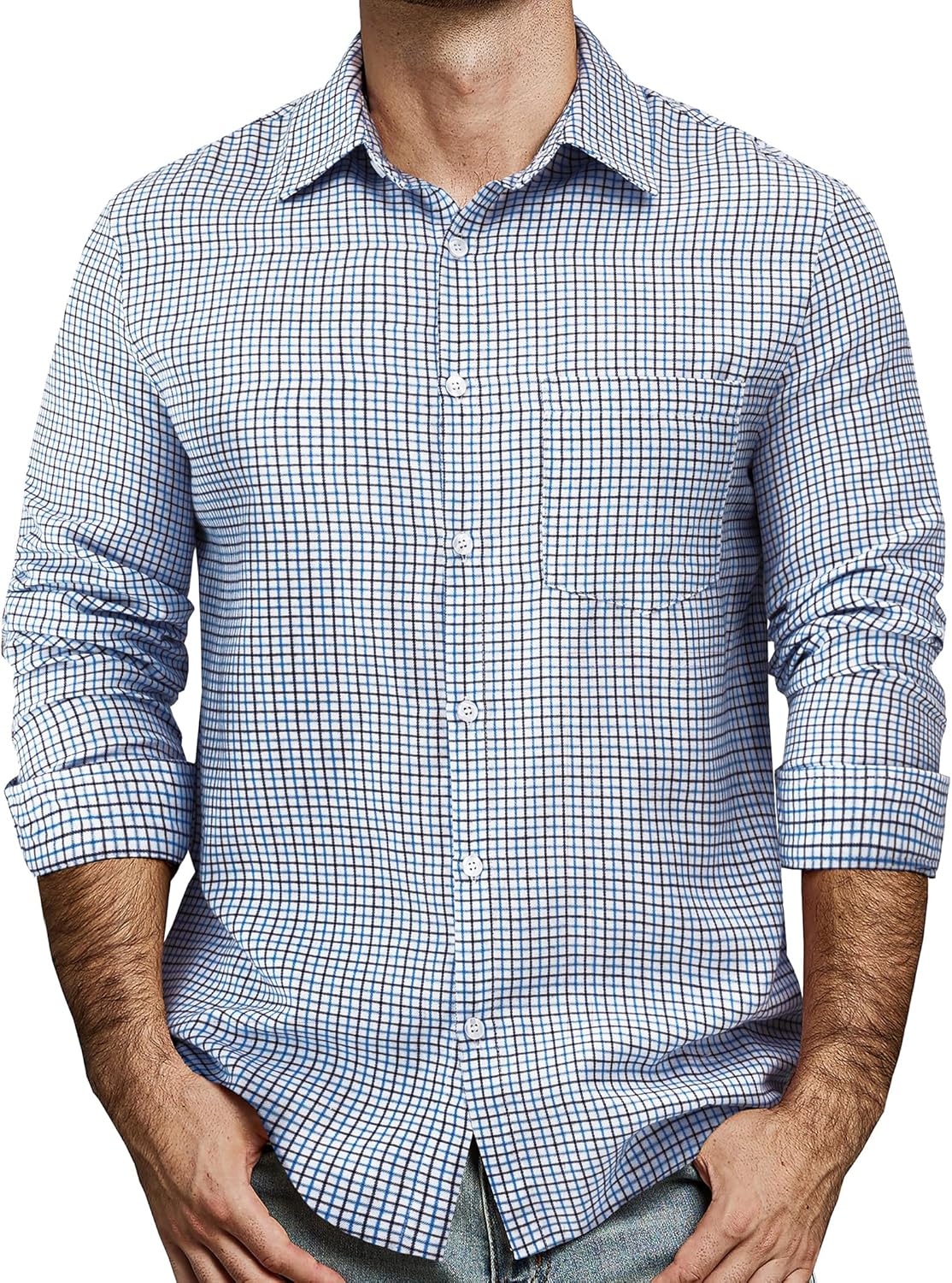 Mens Gingham Button Down Shirt Long Sleeve Dress Shirts Business Casual Shirts with Pockets