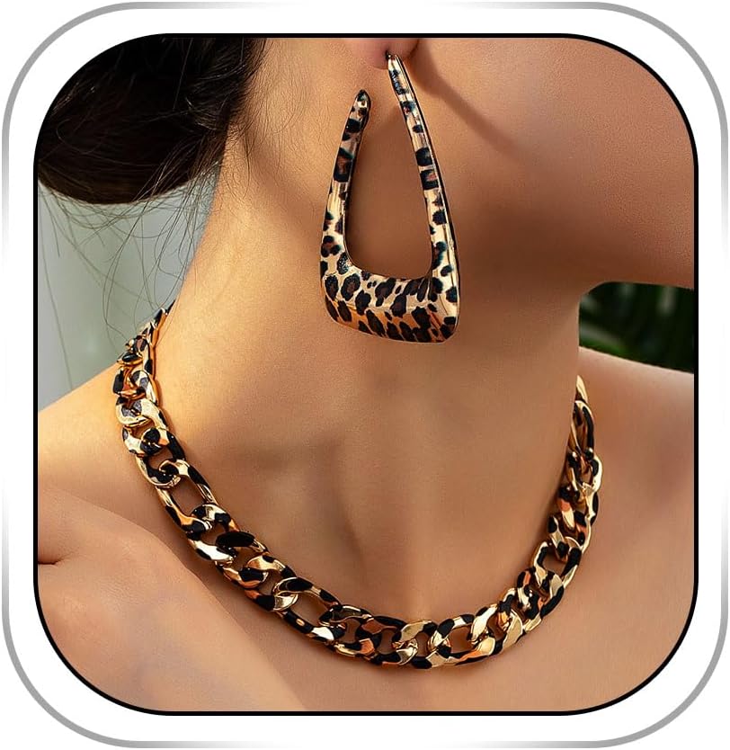 Gold Leopard Print Necklace & Earrings Set - Women's Modern Bohemian Jewelry for Casual Wear & Gifting