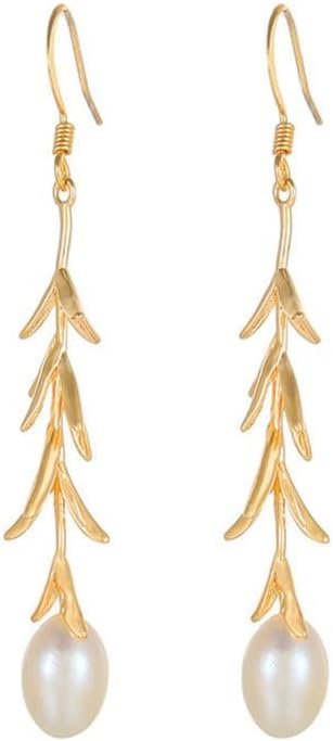 JaruJaru Handmade Freshwater Cultured Pearl Drop Earrings, Real Natural Pearls, Long Dangle Earrings for Women, 18K Gold-Plated, White/Pink Pearl, Unique Jewellery Gift for Her