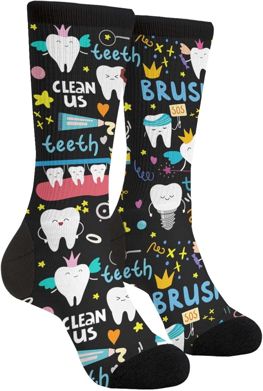 Cute Dental Tooth Dentist Socks Funny Crew Dress Socks For Men Women