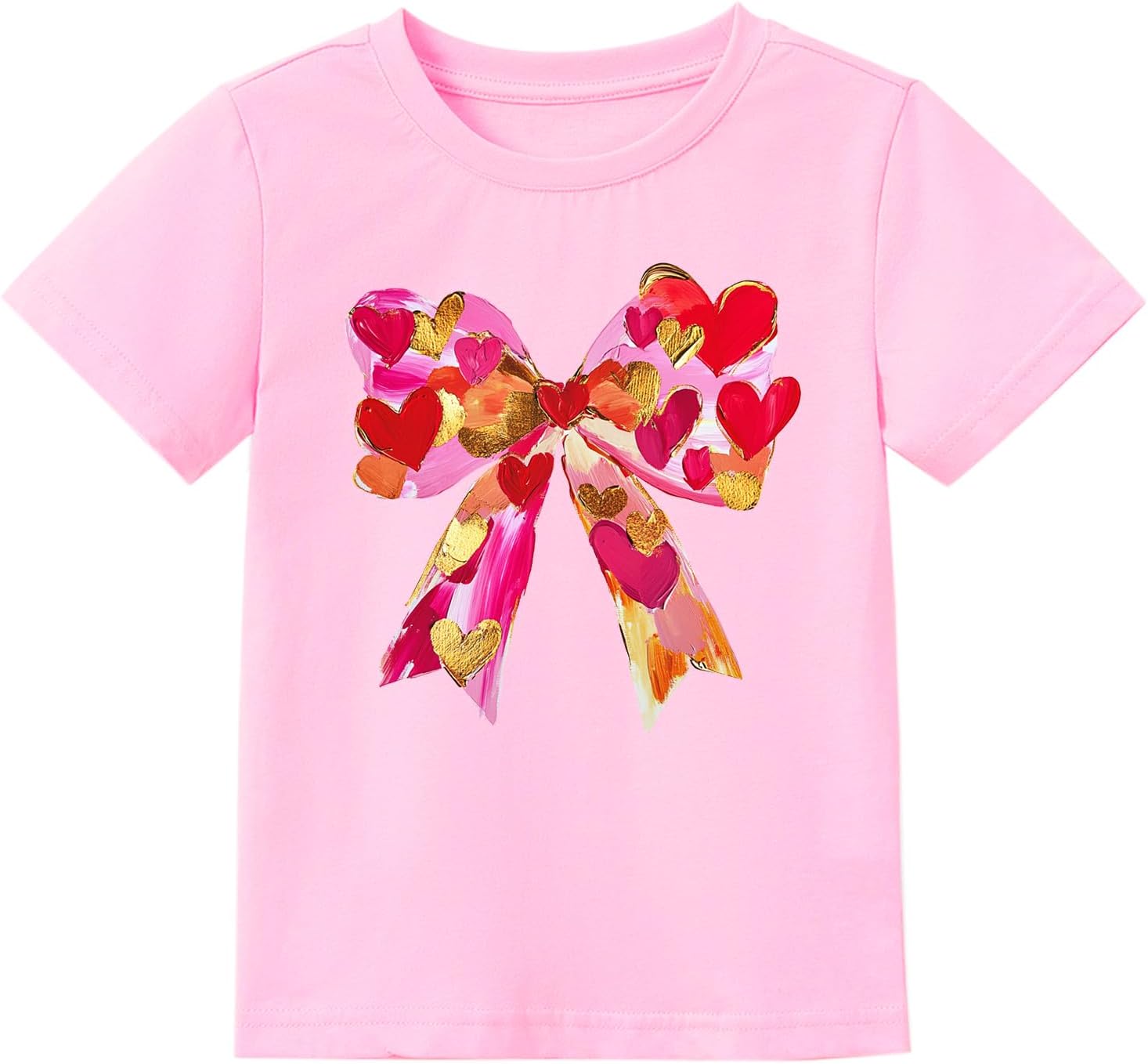 Girls Love Heart Bow Shirts Toddler Valentine Graphic T-Shirt Valentines Day Outfit Tee Tops 2-7T