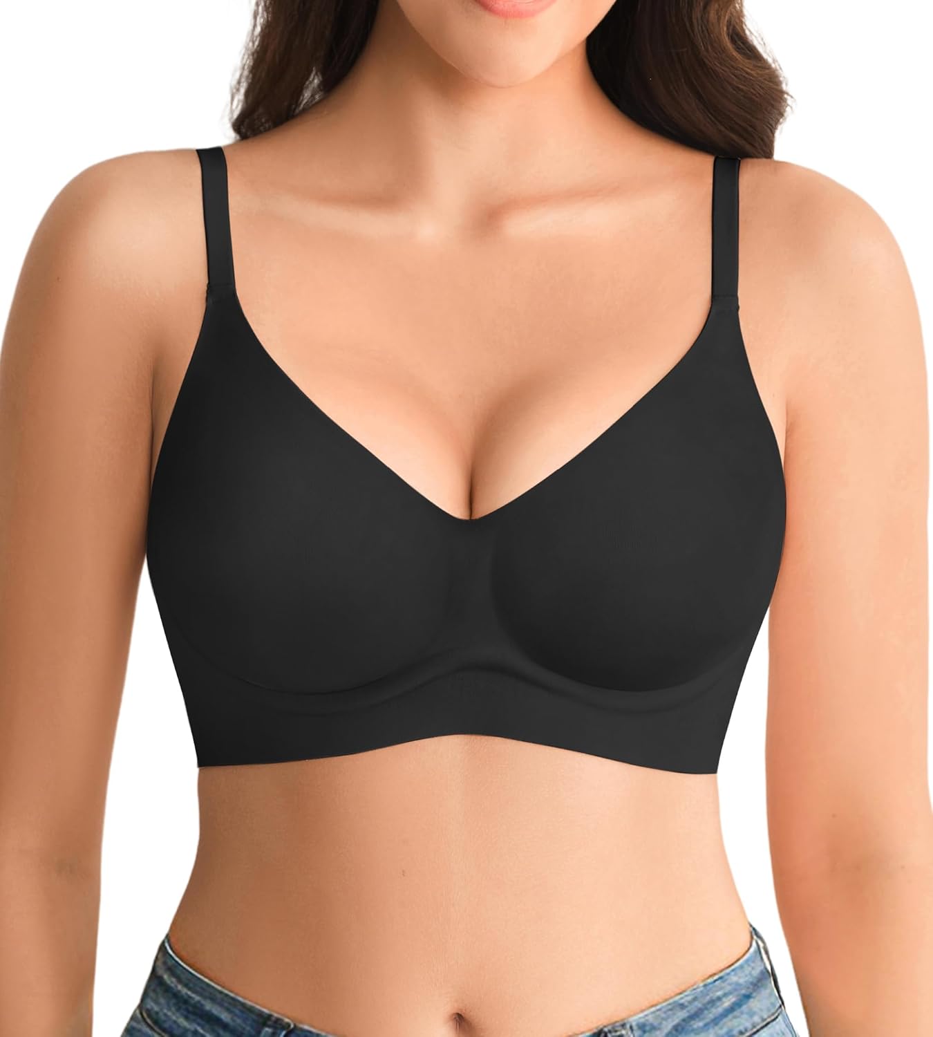 Jelly Bras for Women No Underwire - Wireless Seamless Padded Bralette, Full Coverage Back Smoothing Bra with Support (S-2XL)