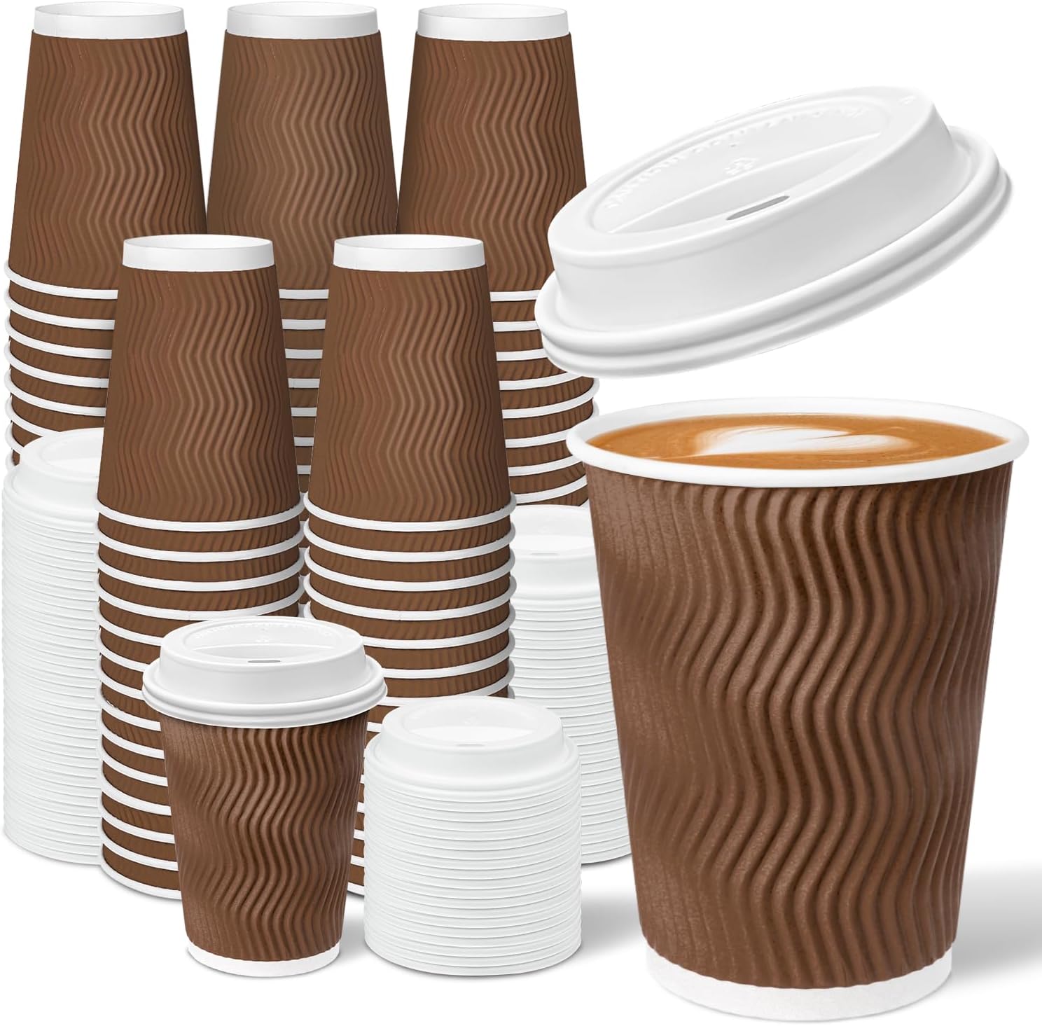 - Bulk Pack for Multiple Occasions: Includes 100 Brown 12 oz coffee cups with matching lids — perfect for coffee bars, offices, events, catering, parties, and daily to-go drinks