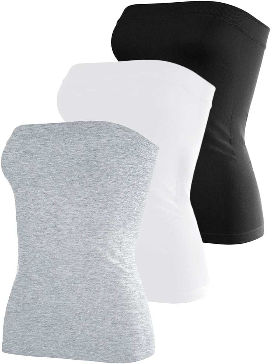 Cotton Tube Tops for Women Summer Cute Strapless Shirts Stretchy Basic Bandeau 3 Pack