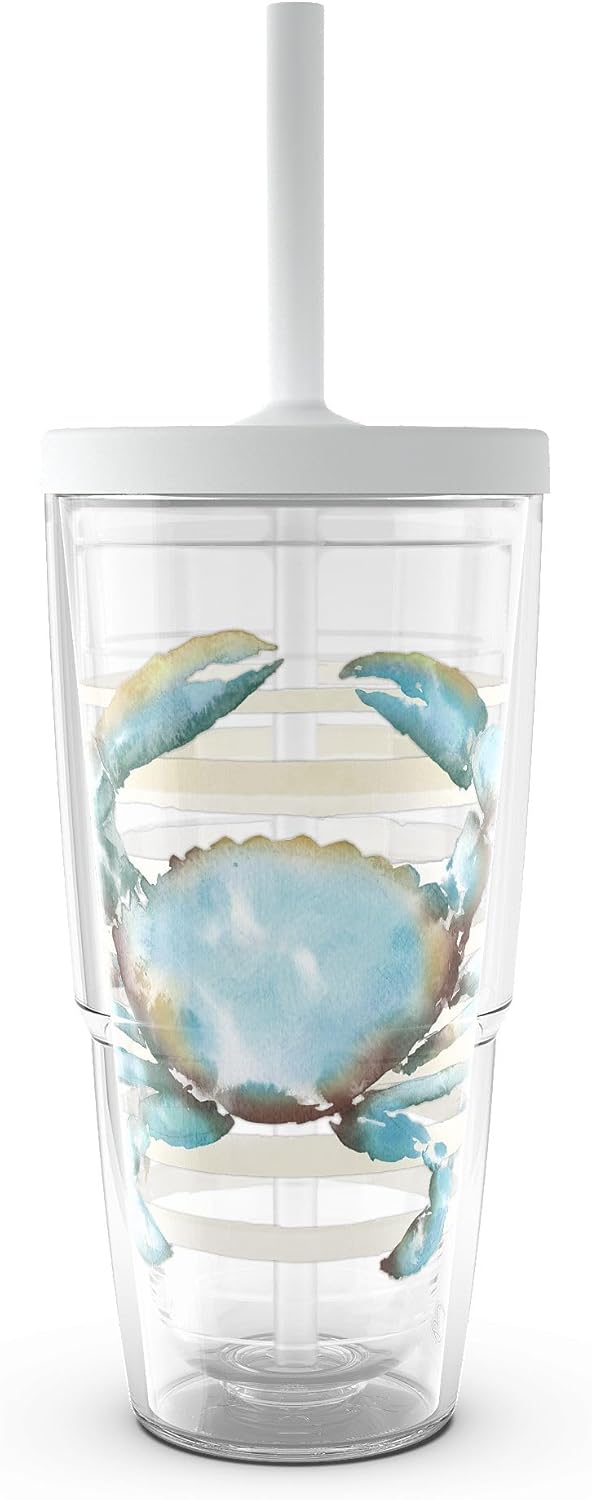 Tervis Sara Berrenson - Atlantica Collection Made in USA Double Walled Insulated Tumbler Travel Cup Keeps Drinks Cold & Hot, 24oz with Straw Lid, Crab