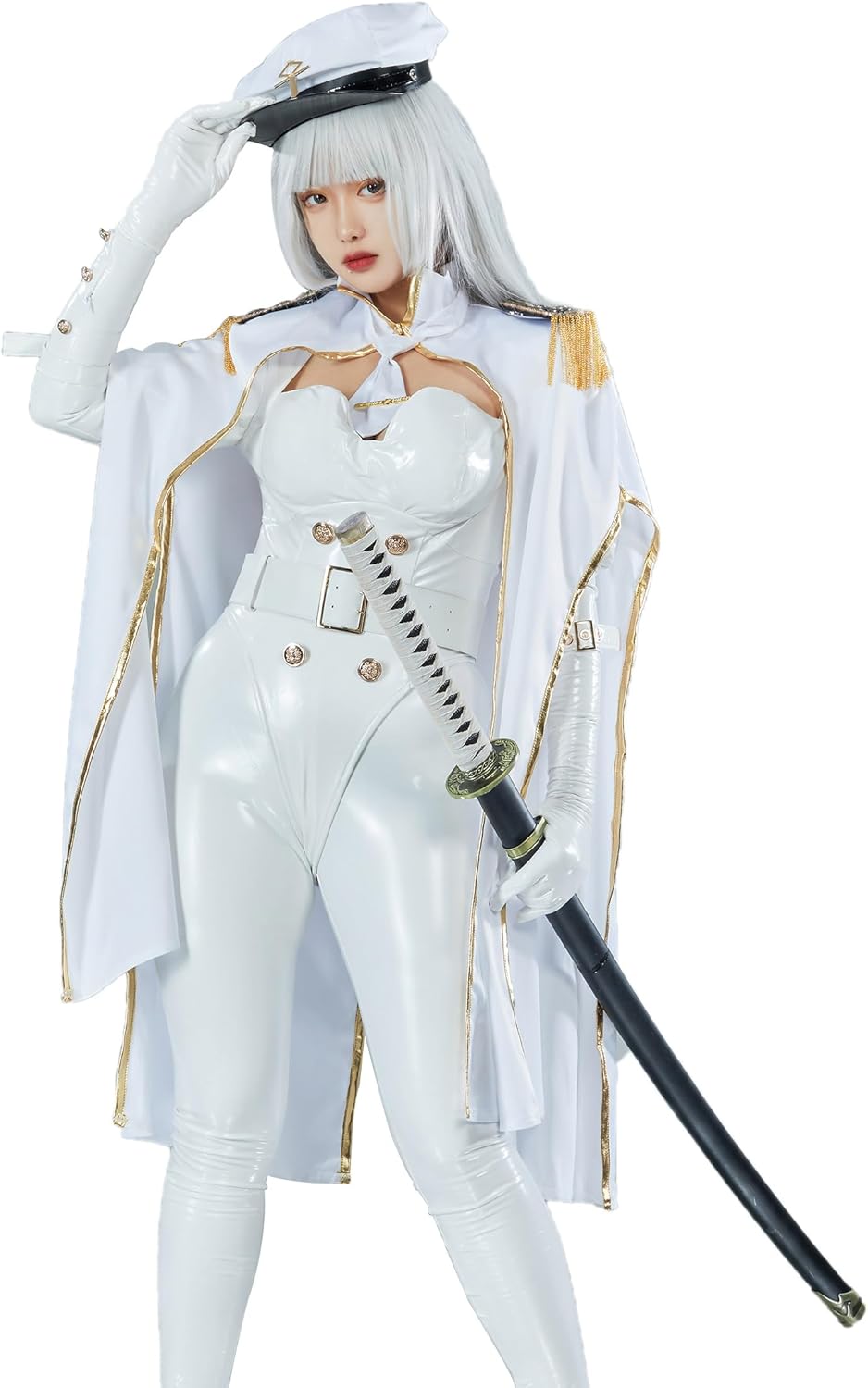 miccostumes x Chowbie Women Costume Anime Inquisitor Cosplay Lingerie Set White Bodysuit with Pants Cloak Hat