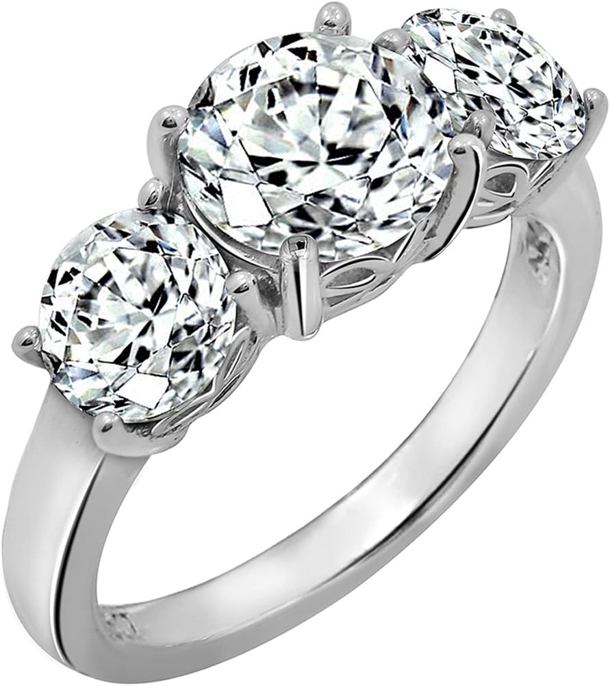 Amazon Essentials Platinum-Plated Sterling Silver Round 3-Stone Ring made with Infinite Elements Cubic Zirconia (4 cttw), Size 7, (previously Amazon Collection)